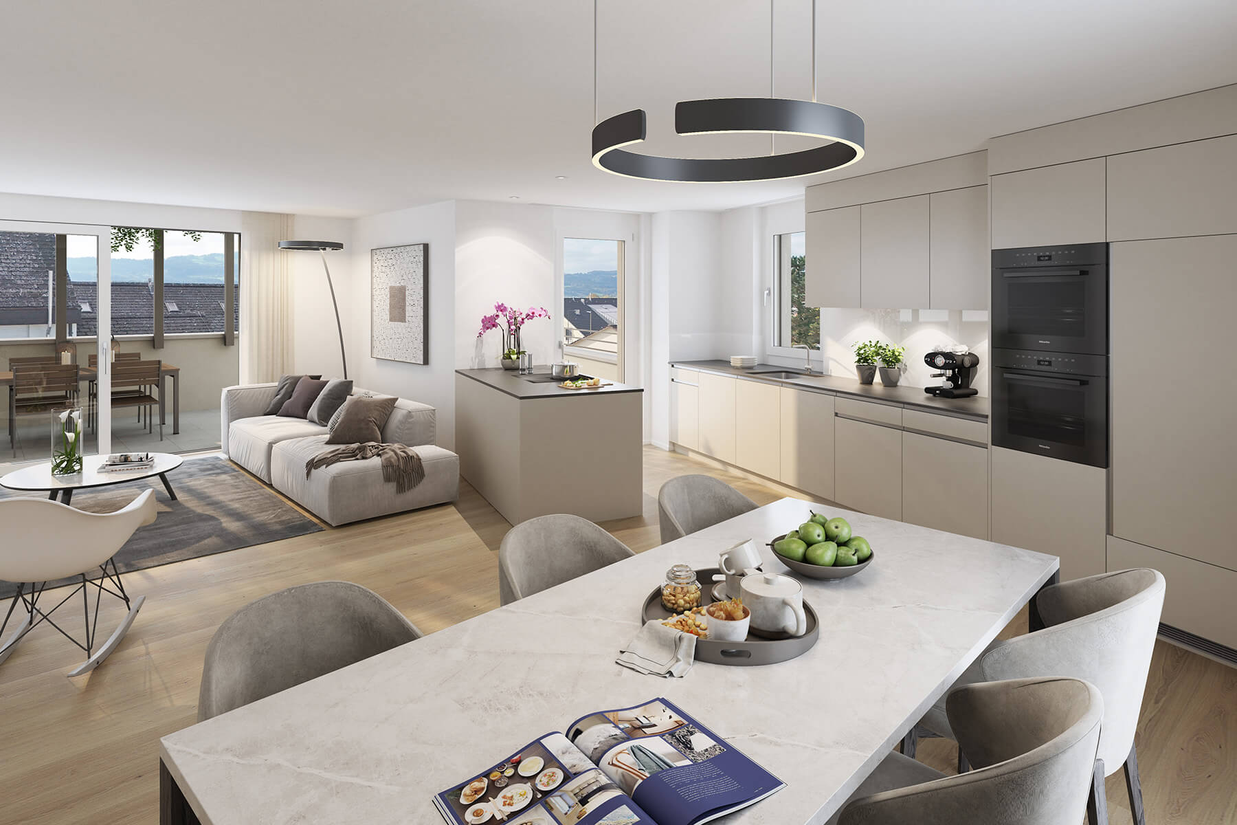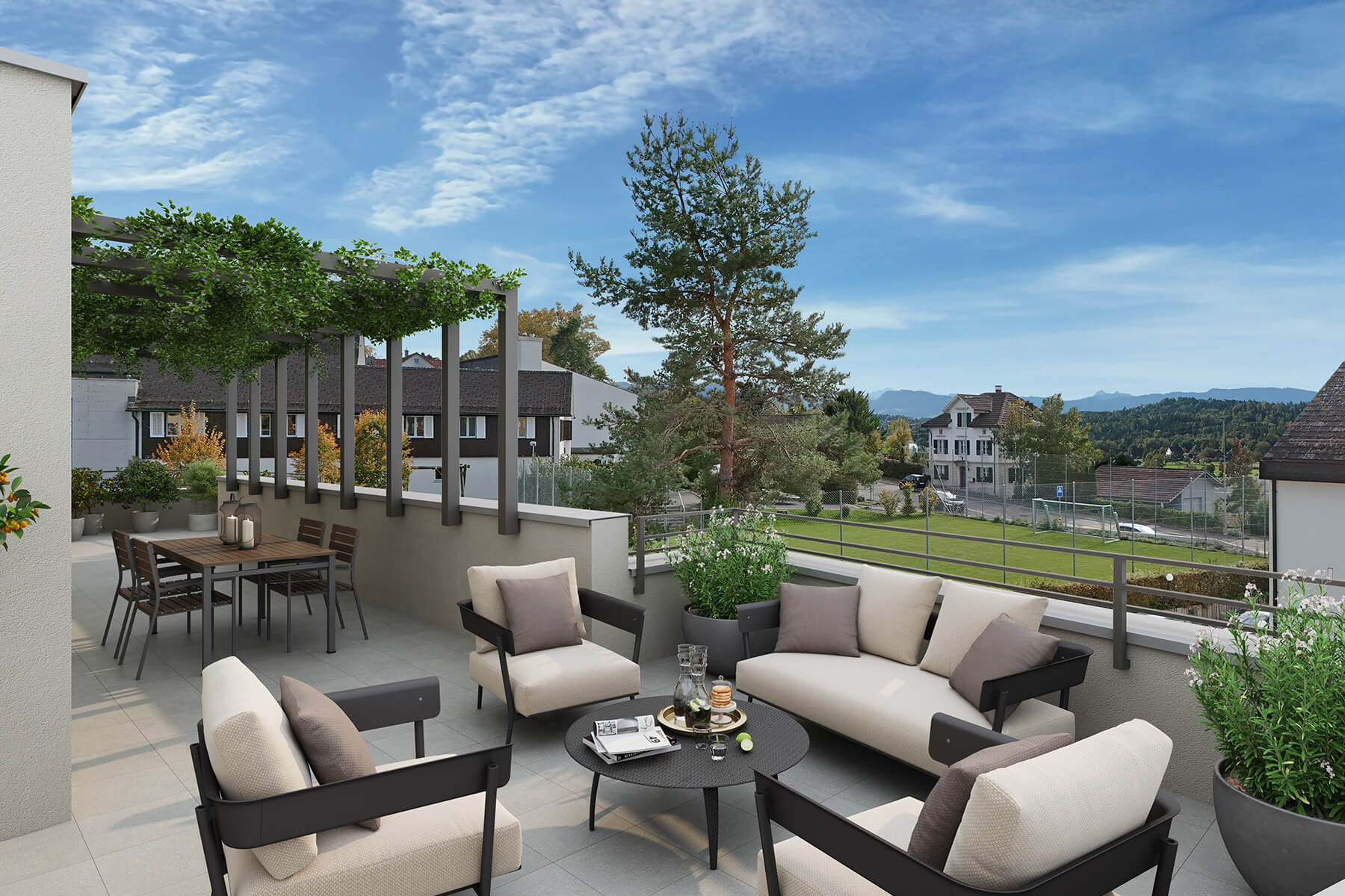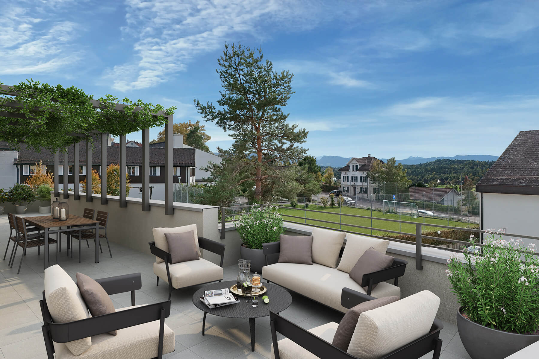 Jede Wohnung verfügt über einen Gartensitzplatz oder einen Balkon – die 4.5-Zimmer-Attika bietet drei Terrassen. Für ein prima Raumklima sorgt eine Wärmepumpe, und Strom wird über die Photovoltaik-Anlage generiert. So wohnen Sie an der Chapfstrasse 8 nicht nur schön, sondern nachhaltig komfortabel.