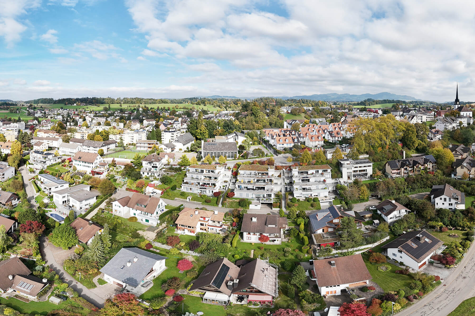 Der Neubau liegt nahe am Zentrum, eingebettet in ein schönes Quartier mit Ein- und Mehrfamilienhäusern. Die beschauliche Gemeinde mit ihren rund 10’000 Einwohnerinnen und Einwohnern bietet auf kompaktem Raum alles, was es für ein entspanntes Leben braucht.